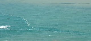 Walked along many beaches with dramatic waves and stunning colour changes. Lots of steps up and down and deviations inland (and uphill !) due to construction work on extending the walk way. B is the surfing capital of the Basque country. The only small beach where it's safe to swim away from the big waves is very choppy and lumpy itself and a 45 mins walk from the Aire, beach side smart cafe charged us 3.5€ for a bottle of Evian water! Bobbing about was the only way to keep your head above the choppy swell . A strange sight watching seemingly decapitated heads bobbing about. Not too clean either.